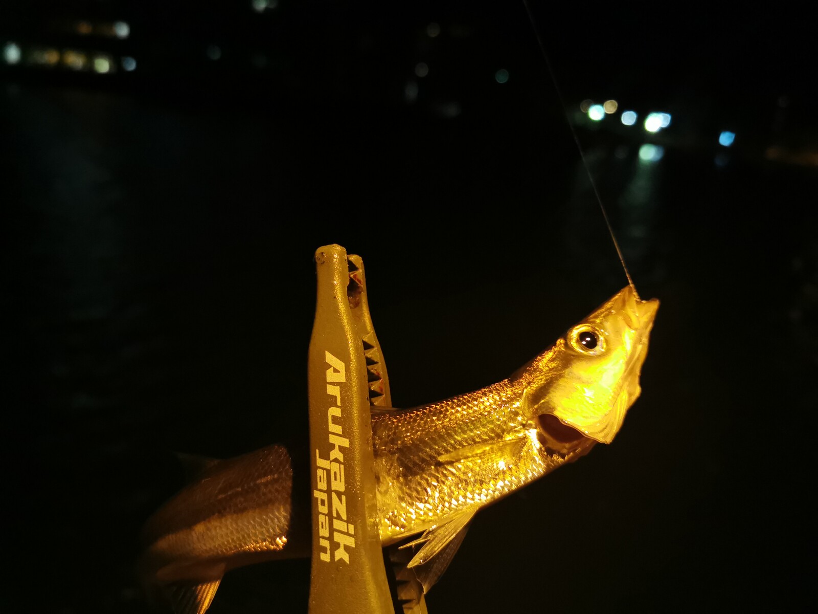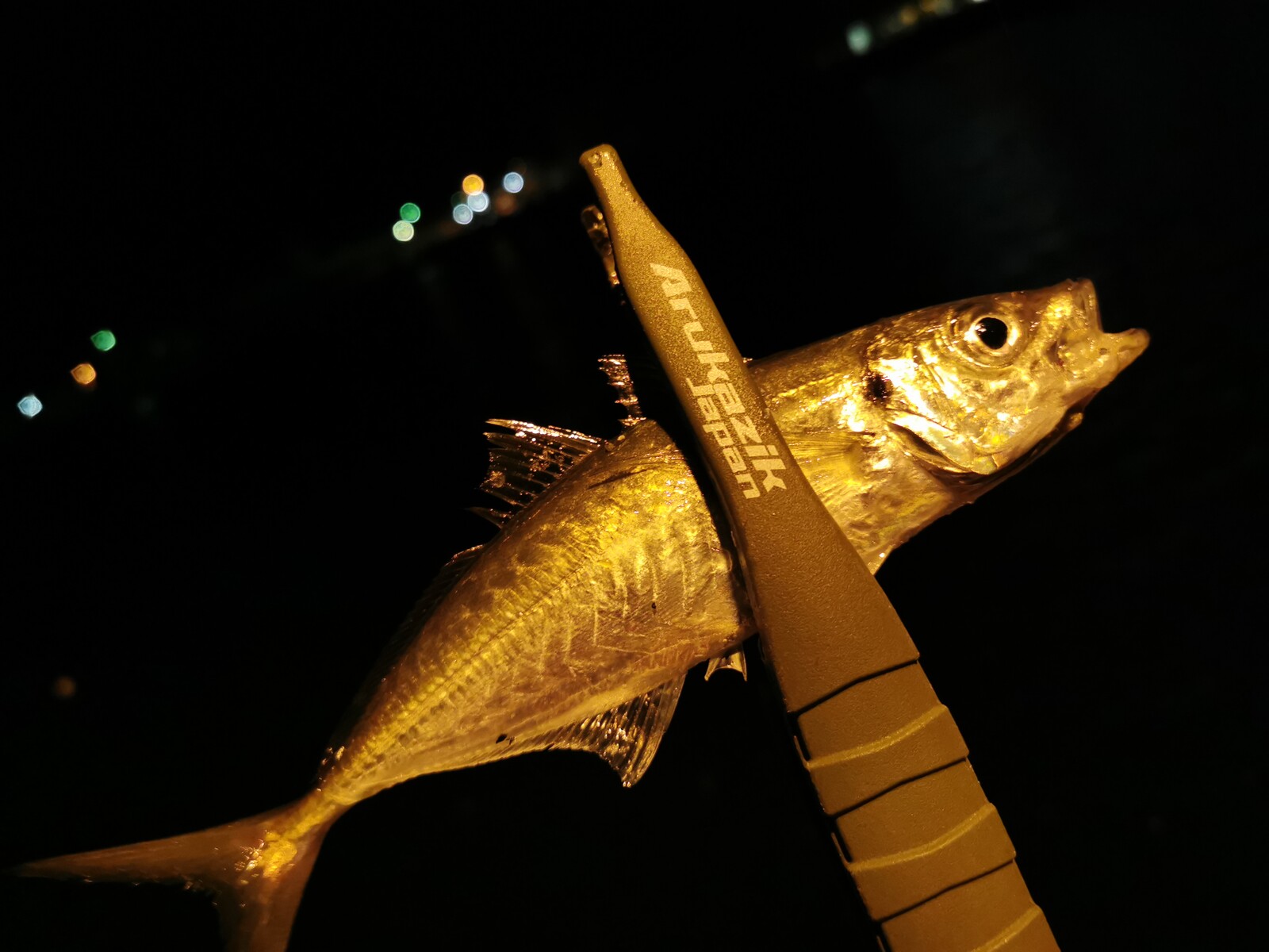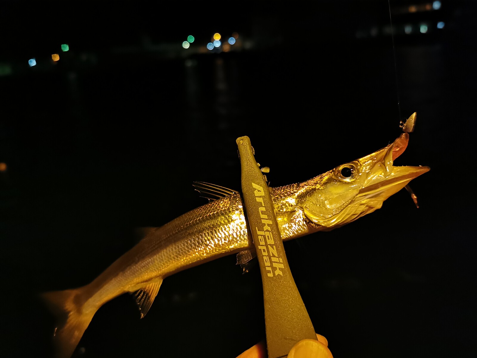 歩きながら色々とキャストしてみるも異常なし。最初に行った常夜灯下に戻ってみると、どうやらカマスが回ってきたみたいで良い感じに釣れだしたみたい。