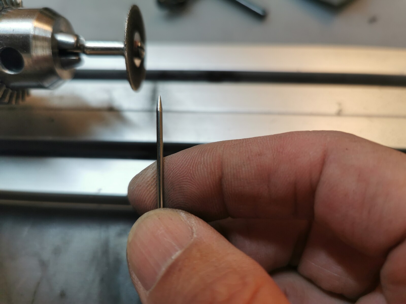 水で冷やしつつ、指でチタンテイップを回しながら削るので少しコツが要るけど、手早く削ることができる。