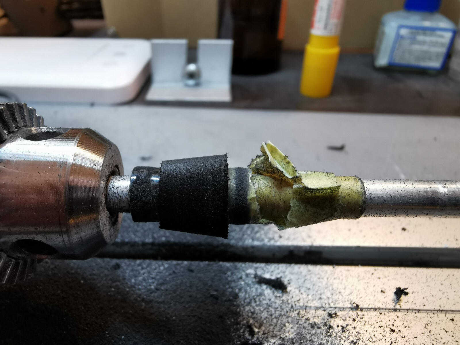 エンド部のEVAなどは、外径6mmのアルミパイプに動かないように工夫をしてセットして削る。