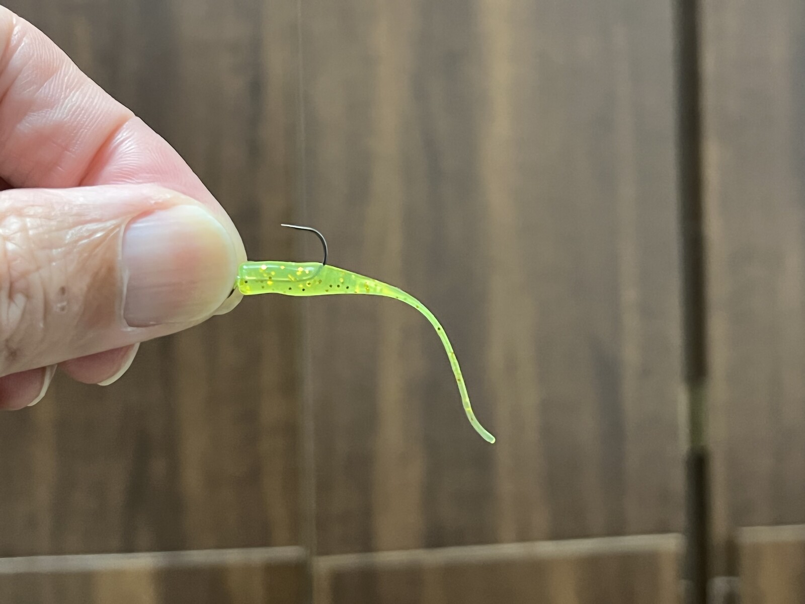 テールが重いワームは、この状態で結構垂れ下がります。