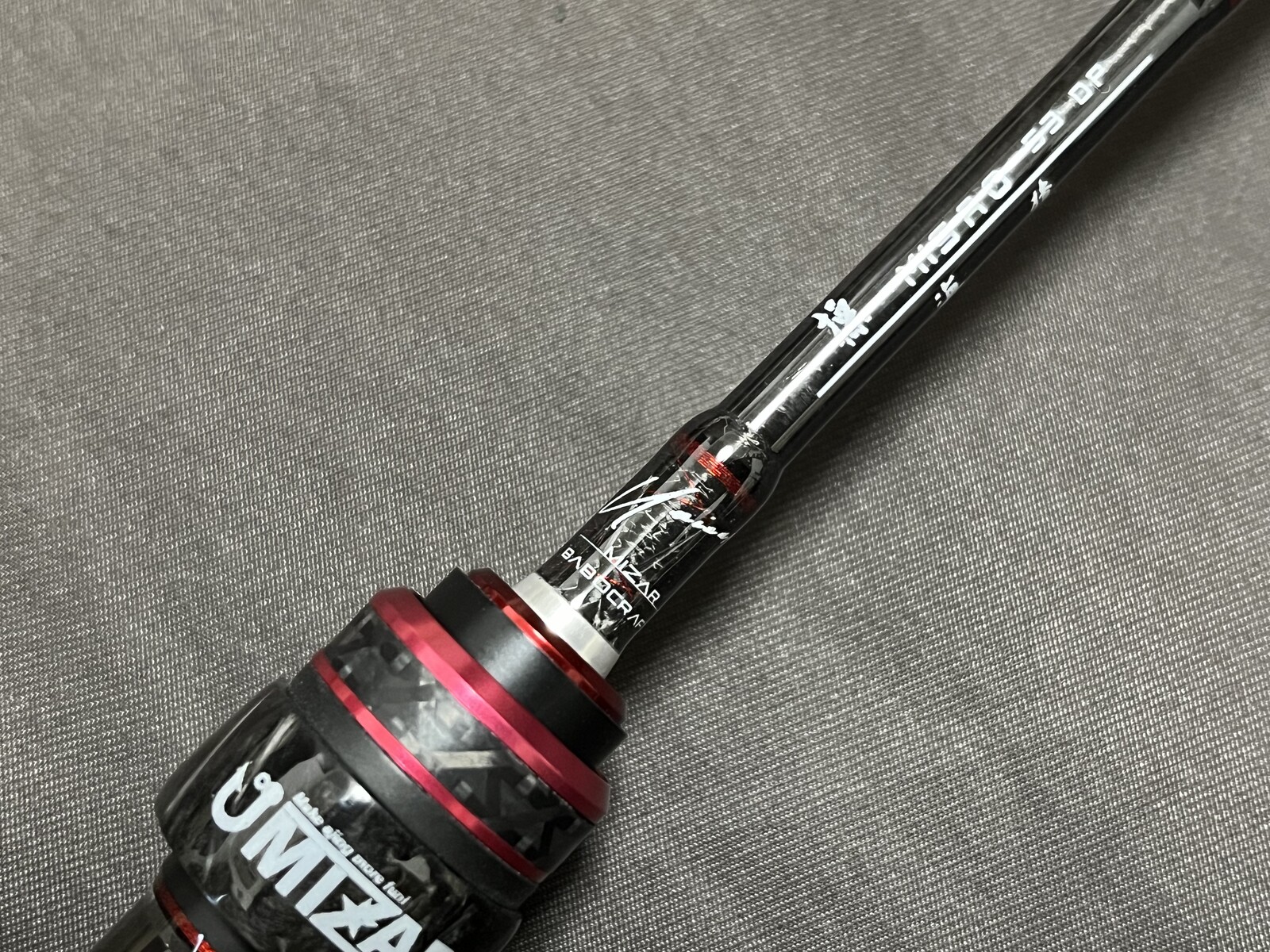 フード部分にMIZARのロゴが大きく入っているため、ブランクとリールシートの接続部には、シャープなフォントでMIZAR×BABOCRAFTを入れる。